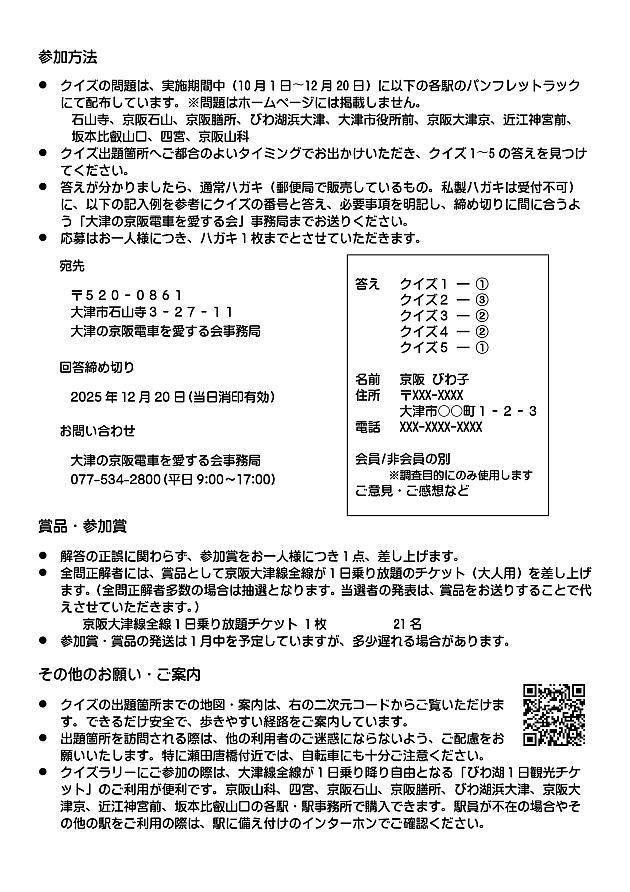 2025年は「昭和」が始まって100年。京阪大津線沿線の「昭和」の足跡をたどるクイズラリーを実施しました。